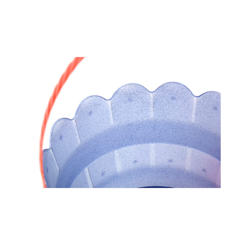 Gitter spetshink, tillverkad från miljövänligt PP-material, är skickligt infunderat med silverlökpulver, vilket gör hinken ännu mer glittrande och glamoröst. Med sin unika design och vågiga kanter är denna hink både vacker och praktisk. Fatet är genomskinligt, vilket möjliggör en tydlig bild av innehållet, vilket gör det perfekt för att lagra och visa små föremål. Det finns i en mängd olika färgalternativ inklusive gult, blått och rött.