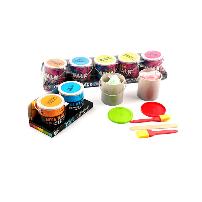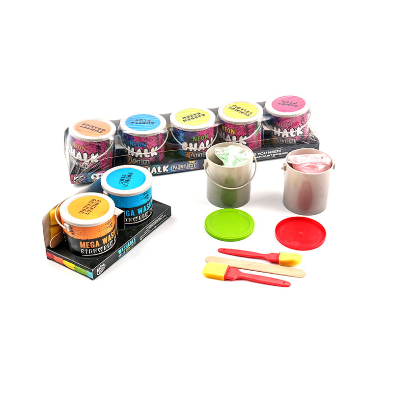 Sidewalk Chalk Paint, en kreativ färg designad för barnens utomhusaktiviteter! Blanda helt enkelt med vatten för att skapa färgglada mönster på golv, väggar och andra plana ytor. Denna produkt innehåller en mängd olika kreativa färger i olika färger och mönster, från blå stjärnor till röda ränder, från orange frukter till lila hjärtan, låt dina barn låta deras kreativitet löpa sig och njuta av det roliga doodling utomhus. Säker, giftfri och lätt att rengöra, idealisk för barnens utomhusaktiviteter!