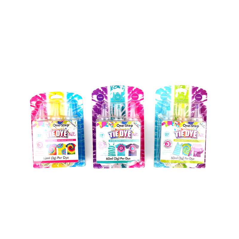Tie-Dye, en konstgjord handfärgningsteknik, ger dina bomullskläder, skor, väskor och mer ett unikt utseende! Genom den unika tie-dye-tekniken får färgämnet tränga in på tyget och skapa ett naturligt och skiktat mönster. Oavsett om det är en färsk, naturlig, dämpad färgpalett eller ett rikt, livligt färgschema, har du kontroll. Använd din kreativitet för att färga dina favoritfärger och mönster på dina föremål, vilket gör dem till dina unika modevaror!